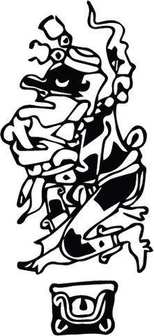 ![]() | Cacao was so favored in the Mayan world that the god pictured on the bottle has a necklace made of Cacao seeds and is holding an offering of Cacao fruit. |